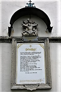 Gedenktafel Derjenigen Krieger der Pfarre und Gemeinde Hellmonsödt welche in den Jahren 1848 bis incl. 1882 ihr Leben für Gott, Kaiser und Vaterland geopfert haben. (Namen) Wir bitten um ein Vater unser