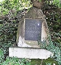 Das Denkmal ist von 1923. Monolithartig mit eingesetzter geschliffener und polierter Platte aus schwarzem Granit und Inschrift, quadratischer Grundriss, konisch nach oben sich verjüngend, Steinputz. Nur Inschrift, keine Namen.