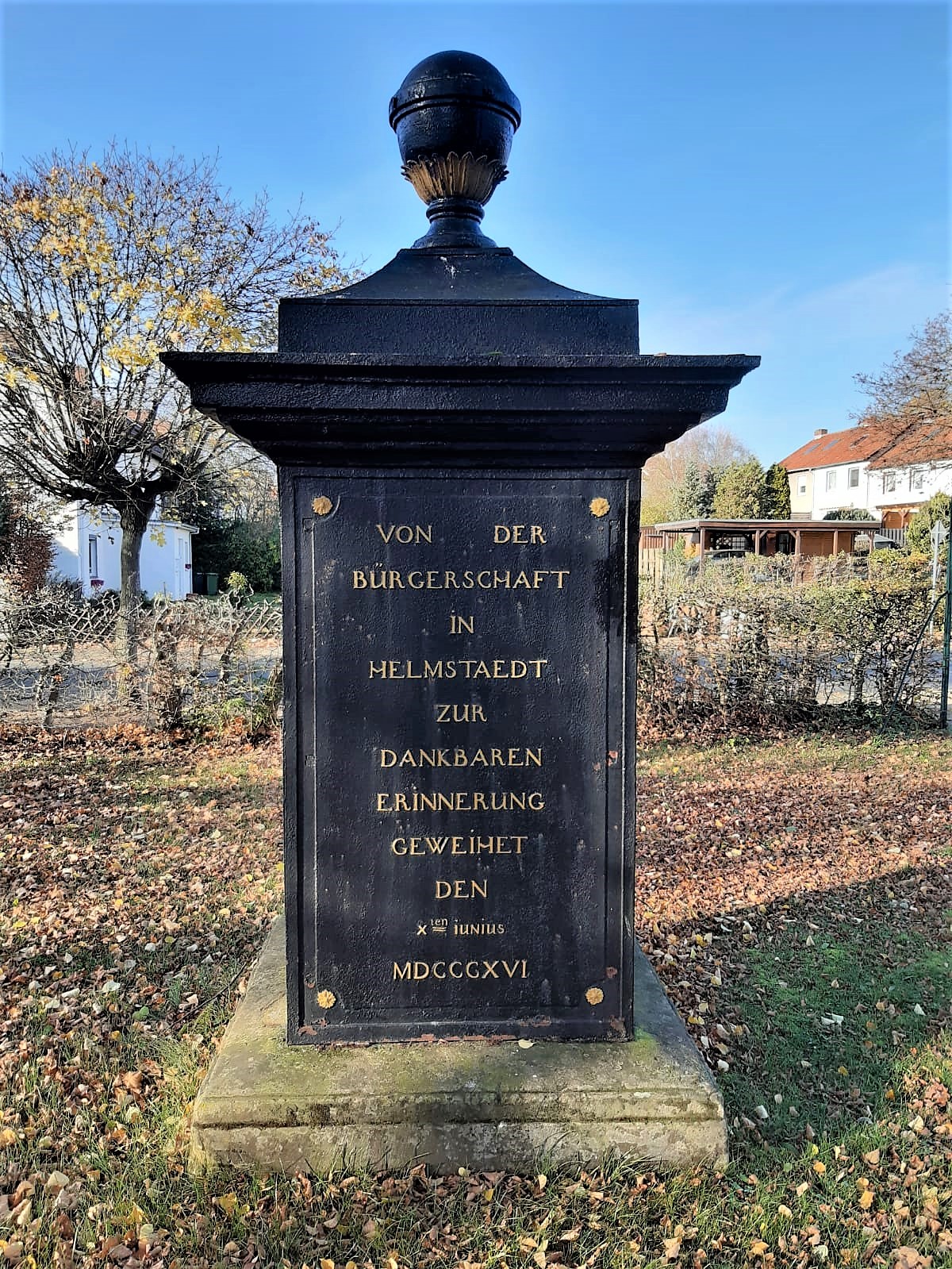 Front Von der Bürgerschaft in Helmstaedt zur Dankbaren Erinnerung Geweiht den Xten iunius MDCCCXVI