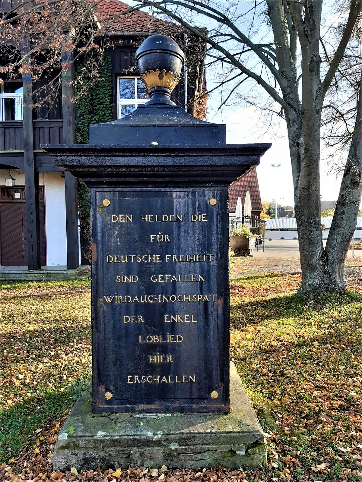 Hinten Den Helden die für Deutsche Freiheit sind gefallen wird auch noch spat der Enkel Loblied hier erschallen