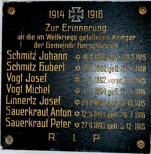 Zur Erinnerung an die im Weltkriege gefallenen Krieger der Gemeinde Herschbroich.