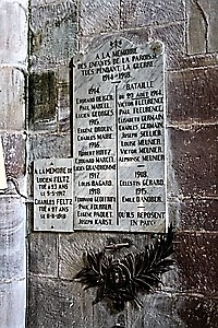 1. Hesse A ses enfants victimes de la guerre 1914 – 1918 Morts à Hesse pendant le bombardement du 20 août 1914 Morts au champ d' honneur 2. A la mémoire des enfants de la parosse tués pendant la guerre 1914 – 1918 Qu'ils reposent en paix!