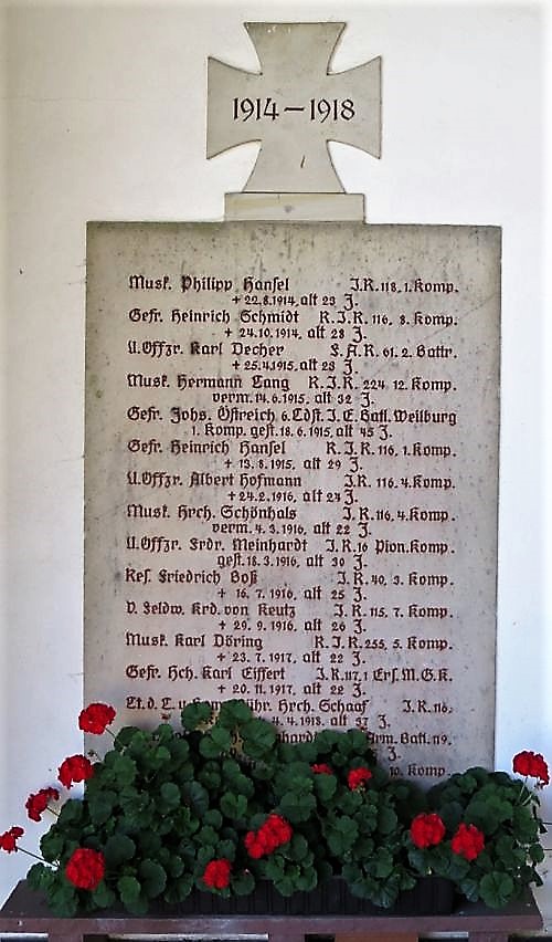 Gedenkplatten darüber jeweils ein Deutsches Kreuz mit Jahreszahlen