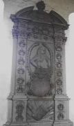 Epitaph A. v. Krusemark: Der hochwohlgebohrene Herr Adam von Krusemark auf Krusemark und Hohenberg. Erbherr weiland (langer schwer zu lesender Text)