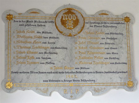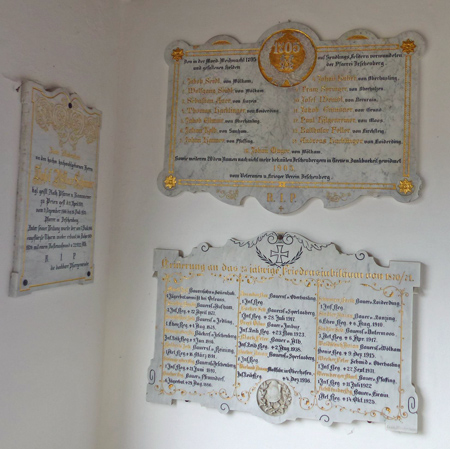 Zwei Gedenktafeln aus Marmor in der Pfarrkirche.