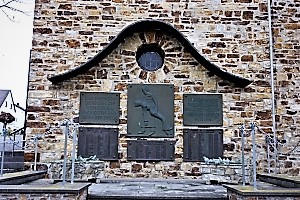 An der Seite der Kadenbacher Kirche erinnern Namenstafeln neueren Datums an die Opfer