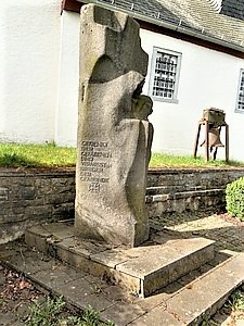 St. Antonius in Kottenborn. Es ist ein Basaltlava-Pfeiler, herausgearbeitet sind ein Kreuz