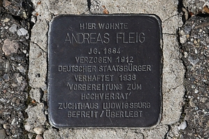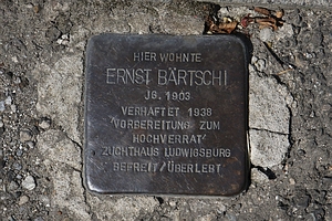 verzogen 1912, deutscher Staatsbürger, verhaftet 1938 "Vorbereitung zum Hochverrat", Zuchthaus Ludwigsburg, befreit/überlebt
