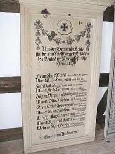 Aus der Gemeinde Kriele starben im Weltkriege 1914 – 1918 den Heldentod im Kampfe für die Heimat. (Namen) Ehre ihrem Andenken.