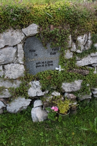 Denkmal außerhalb des Friedhofes, drei gemauerte Steintürme mit Tafel; im Eingangsbereich der Kirche Gedenktafel mit Namen und Fotos, (die Daten wurden zusammengefasst, Abweichungen in grau markiert); im Friedhof ein Kriegsgrab und Daten von privaten Gedenksteinen