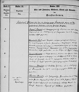 Gestorben an den Folgen vom Typhus. Erben die Ehefrau und mind. Kind Lorenz