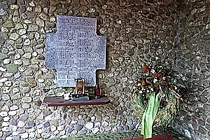 gestorben; möglich: Steinkreuz mit verwitterter Inschrift