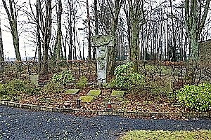 Peter Gross ruht auf diesem Friedhof, das Steinkreuz seines Kriegsgrabes steht neben der Aussegnungshalle