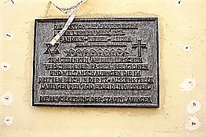 Zum Gedenken an die Menschen verschiedener Rassen, Religionen und Weltanschauungen, die im Dritten Reich in der KZ-Außenstelle Lauingen den Tod erleiden mussten