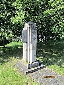 In Dorfmitte an der einzig relevanten Kreuzung steht eine ca. 1,8 m hohe Sandsteinstele mit Widmung und zwei