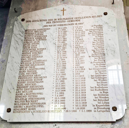 Gedenktafel für die Gefallenen des 1. Weltkriegs in der evangelischen Dreifaltigkeitskathedrale.