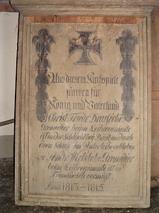 Aus diesem Kirchspiel starben für König und Vaterland. (Namen) Annis 1813 – 1815.
