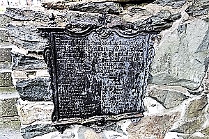 Am rückwärtigen Treppenaufgang zur Lierscheider Kirche erinnert eine Metalltafel an