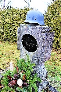 am 26. März 1945 gefallenen, unbekannten Soldaten. Sein Grabkreuz ziert ein Helm.