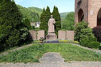 Das 1938 neben der katholischen Kirche eingeweihte Kriegerdenkmal für die in den beiden Weltkriegen Gefallenen, Verstorbenen und Vermissten aus der Gemeinde wurde nach 1945 vereinfachend neugestaltet. Es besteht aus vier Steintafeln mit den Namen der Kriegstoten. In der Mitte steht auf einem mit der Inschrift versehenen Sockel ein starr geradeaus blickender Soldat mit Stahlhelm, langem Militärmantel und Gewehr. Die Anlage machte einen sehr gepflegten Eindruck.