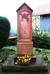 In der Ostecke des Platzes vor der evangelischen Kirche: Sandsteinstele des Kriegervereins für zwei Gefallene des Krieges 1870/71, links und rechts davon je zwei durch eine weitere Platte mit Kreuzdarstellung verbundene liegende Platten aus grauschwarzem Stein mit den Namen der Gefallenen und Vermissten der beiden Weltkriege