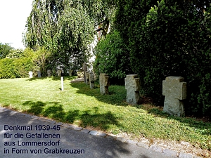 des Zweiten Weltkrieges steht eine Reihe von dreizehn Steinkreuzen zwischen dem Denkmal und der Alten