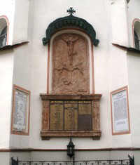Gedenktafeln an der Ostseite des Chorraums der Pfarrkirche St. Johannes Baptist