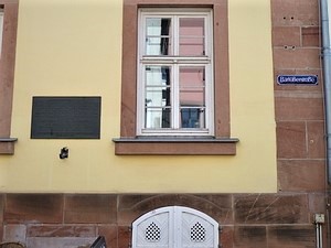 Barfüßerstraße 11. Gedenktafel an der Außenfassade des Bauamts der Stadt Marburg.