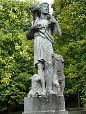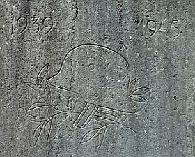 Maria Laach, Verbandsgemeinde Burgbrohl, Landkreis Ahrweiler, Rheinland-PfalzPLZ 56653 Auf dem Vorplatz der Abteikirche, rechts am Fuß der zum Vorplatz führenden Treppe, ein Denkmal für die gefallenen Mitglieder der Abtei Maria Laach in den beiden Weltkriegen. Auf einem Steinpfeiler die Skulptur eines Hirten mit Panflöte, einem Lamm auf der Schulter und zwei Schafen zu seinen Füßen (Jesus der Gute Hirte ?). Auf der Frontseite des Pfeilers eine Widmung, darunter die Namen, ihr Status in der Abtei, Ort und Datum des Todes, darunter eine Widmung. Auf der linken Pfeilerseite oben ein Eisernes Kreuz eingerahmt von Eichenlaub, im unteren Teil eine Widmung. Auf der rechten Pfeilerseite oben die Jahreszahlen 1939 und 1945, ein Stahlhelm und Lorbeerzweige, darunter die Namen, getrennt durch ein Kreuz. Die bildlichen Darstellungen wurden nur in den Stein eingeritzt.