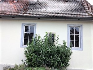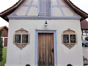 Gedenktafeln (1870-71 und Erster Weltkrieg) neben der Eingangstür der Kapelle in Mittelstenweiler. An der Seitenwand eine Gedenktafel für die Gefallenen des Zweiten Weltkriegs.