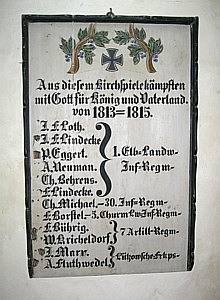 Gefallene, Gestorbene oder Vermisste sind auf der Tafel des 1. Weltkriegs durch ein Kreuz (†) gekennzeichnet. Die Namen der Gefallenen sind mit sehr vielen weiteren Daten im Kapitel zum Denkmal in Nahrstedt aufgelistet. Diese Daten werden hier nicht noch einmal übertragen. Daten aus den offiziellen Verlustlisten zu überlebenden Kriegsteilnehmern werden hier aber unter Bemerkungen hinzugefügt.