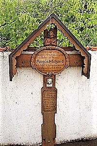 Grabkreuz auf dem Friedhof (aufgelöstes Kriegsgrab). Das Grabkreuz wurde restauriert und zur