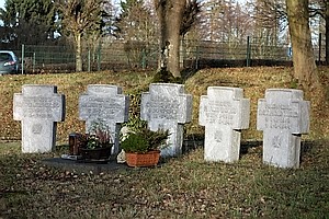 Der Friedhof befindet sich im Norden der Ortschaft an der Hillscheider Straße. Auf dem Friedhof erinnern fünf steinerne Grabkreuze an die hier beigesetzten Kriegsopfer des Zweiten Weltkrieges. Die Soldaten sind in dem Datenbestand des Volksbundes Deutscher Kriegsgräberfürsorge „Gräbersuche Online“ nicht abrufbar. An der Außenwand der Katholische Kirche St. Anna wird an die Gefallenen gedacht.
