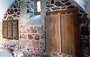 Die Holztafeln für die Gefallenen beider Weltkriege befinden sich im Eingangsbereich der Kirche St. Georg.