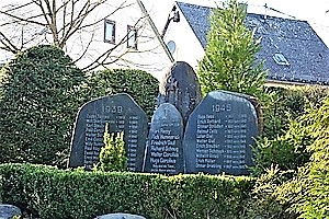 Steingruppe erweitert (Namen 2. Weltkrieg) und mit einem stilisierten Eisernen Kreuz geziert.