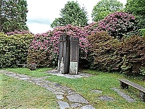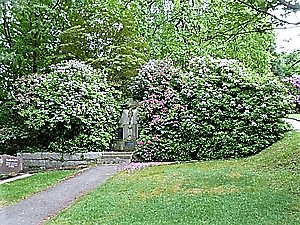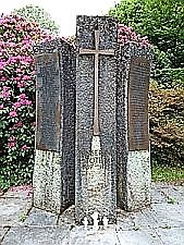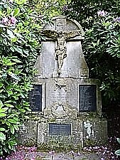 Friedhof. Zwei Denkmäler am oberen Ende der Anlage. Das für die Gefallenen und Vermissten des Ersten Weltkriegs verbindet religiöse mit kriegerischen Motiven: Unterhalb der Darstellung des gekreuzigten Heilands sieht man einen Stahlhelm mit gekreuzten Schwertern, die Inschrift und einen gebundenen Siegeskranz. Das weiter oben am Friedhofsende stehende Denkmal für die Toten des Krieges 1939 - 1945 ist ein modernes, in seiner Art sehr nüchternes und funktionales, dominiert von einem großen christlichen Kreuz an der Frontseite der mittleren Säule.