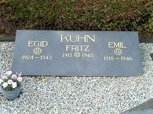 Anmerkungen: Die sechs im Sammelgrab bestatteten Soldaten waren vom französischen Militärtribunal in Rastatt (wohl wegen Kriegsverbrechen) zum Tode verurteilt und offenbar am 14.02.1948 bei Sandweier erschossen worden. Dutzende von zum Tode Verurteilten wurden bei Sandweier oder im Stollhofener Wald in der Nähe des heutigen Baden-Airports hingerichtet. Ergänzungen in Rot: v. a. Staatsarchiv Ludwigsburg, Kriegsgräberlisten Baden-Württemberg (EL 20/1 VI Bü 725 Gemeindefriedhof Ötigheim). Ergänzungen in Blau: Daten aus www.volksbund.de/graebersuche.html.