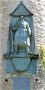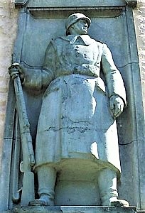 Denkmal für die Gefallenen des Infanterie-Regiments „Herzog Friedrich Wilhelm von Braunschweig“ (Ostfriesisches) Nr. 78 und seiner Tochter-Regimenter am Bucksturm der alten Stadtbefestigung: Soldatenfigur mit Inschriften oberhalb und unterhalb der Figur.