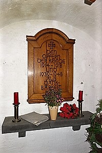Kirche gelangt man in eine Gedächtniskapelle, in der ein Ehrenbuch mit Kriegsopfern ausliegt.