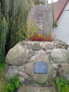 Denkmal für die Gefallenen des 1. und 2. Weltkriegs aus aufgetürmten Feldsteinen und Findlingen; Ehrenliste für die Gefallenen des 1. Weltkriegs.