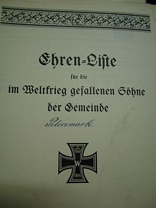 Ehrenliste: Ehren-Liste für die im Weltkrieg gefallenen Söhne der Gemeinde Petersmark