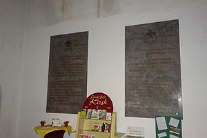 Auf zwei erhalten gebliebenen großen Namenstafeln neben dem Orgelbereich wird an die