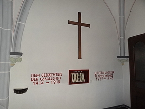 aus der Kirchengemeinde gedacht. An der Außenmauer wird ebenfalls an die Opfer von Krieg und
