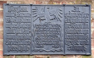 Linker Teil Hier fielen am 12. Februar 1924 beim Sturm auf das Bezirks= amt im End= kampf gegen die Separatisten= herrschaft: