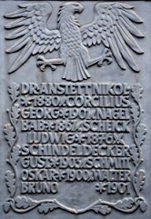 Am Straßenrand auf einer Sandsteinmauer neben Bahnhofstraße 22: Dreiteilige, vermutlich gußeiserne grauschwarze Tafel zum Gedenken an die am 12.02.1924 beim Sturm auf das von Separatisten besetzte Bezirksamt Pirmasens gefallenen Personen. Linker und rechter Teil mit Inschriften, auf dem Mittelteil unter der Darstellung eines Adlers die Namen der Getöteten (in der Liste der Kulturdenkmäler von Pirmasens enthalten). Die bei dem Angriff getöteten Separatisten (je nach Quelle sollen es vierzehn oder siebzehn gewesen sein) werden nicht genannt.