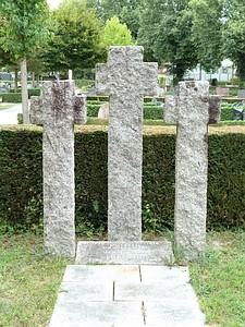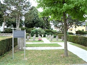 Friedhof. Gepflegte Gräberanlage für Soldaten und Zivilisten, die während und nach dem Zweiten Weltkrieg ihr Leben verloren. Zur Anlage gehören drei Steinkreuze mit einer liegenden Steintafel, Grabstätten mit Kreuzen aus demselben Material sowie eine Informationstafel.