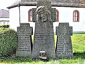 Vor der Filialkirche St. Barbara und Helena in Pomster steht ein Denkmal für die Gefallenen beider Weltkriege. Die Anlage besteht auf drei kreuzförmigen sich nach unten verbreiternden Basaltlava-Platten. Die mittlere Platte überragt die beiden anderen. Oben auf der Platte ist ein Christuskopf mit Dornenkrone abgebildet, im unteren Teil steht eine Widmung.