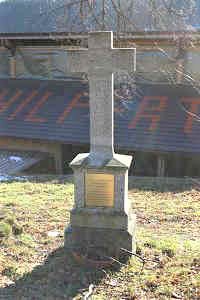 An der Straße nach Berg, beim Hubertenhof, steht steinernes Kreuz mit Gedenktafel.