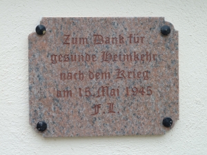 Zum Dank fürgesunde Heimkehrnach dem Krieg am15.Mai 1945F. L.
