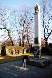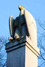 Säule mit krönendem Adler, links umrandet von dort bestatteten Kriegsopfern, rechts